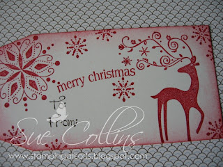 I used the Letters to Santa DSP and some of the new stamp sets...Stitched stockings and Merry and Type. You can even spy one of the new punches from the Summer mini - the postage stamp punch which coordinated perfectly with the postage Christmas stamp from that set. There are more coordinating stamps in the mini.